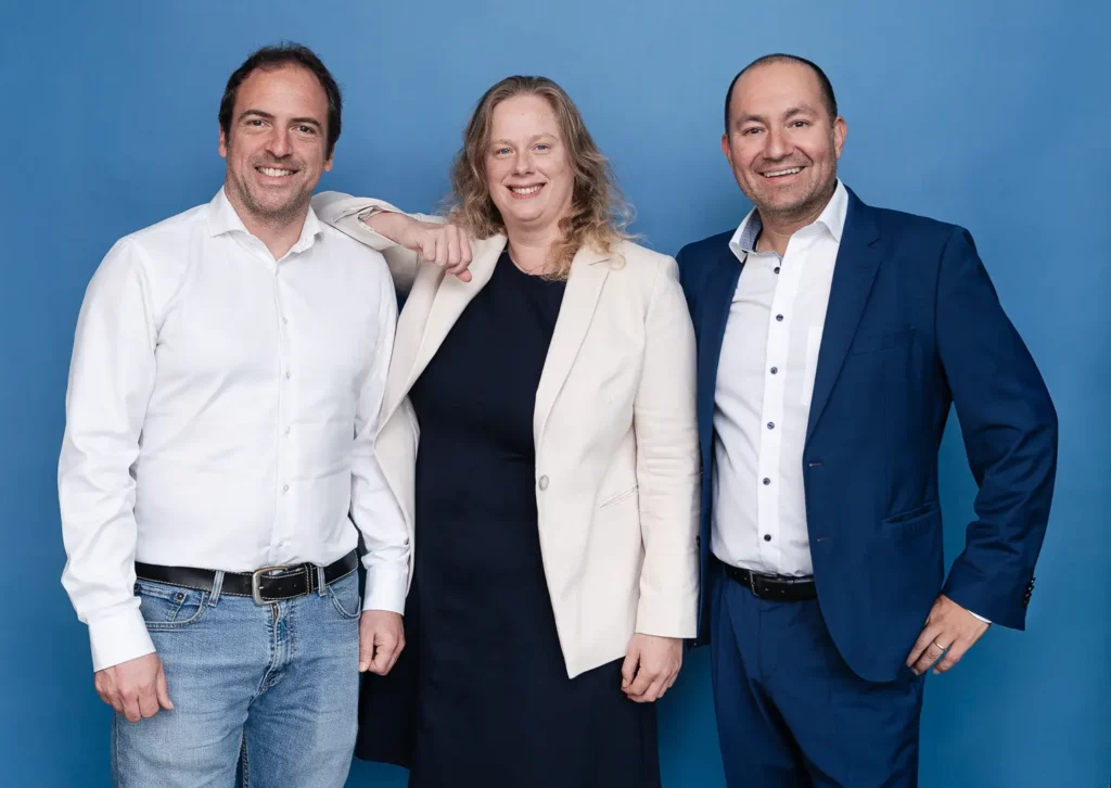 Dr. Vasko Kramer, Dr. Anne Berking and Dr. Alejandro Rojas stehen gemeinsam vor einem blauen Hintergrund und lächeln in die Kamera.